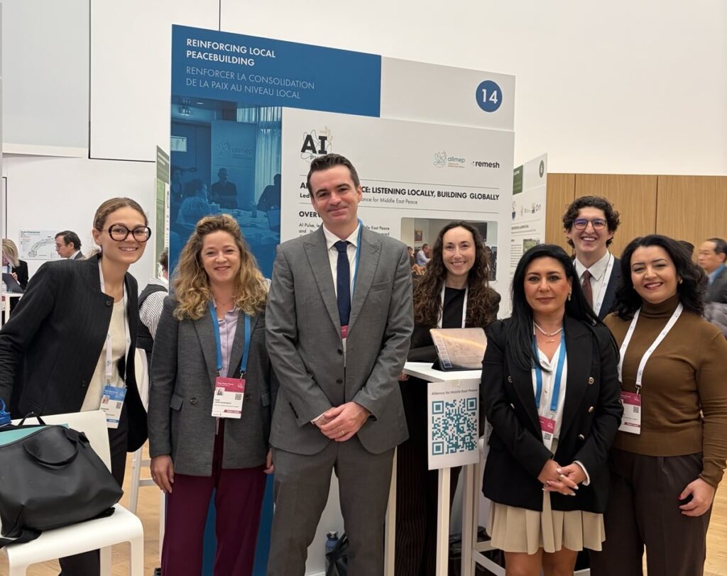 At this year’s annual Paris Peace Forum “New Coalitions for Peace, People and the Planet”, ALLMEP and our members were present to ensure representation, voice, visibility and that urgent messages from Israeli and Palestinian peacebuilders were front and center. Alongside a continuous presence at our AI Pulse stand, we hosted a panel on integrating civil society into multilateral diplomacy, a roundtable on policy recommendations from peacebuilders, and presented our AI Pulse polling in a session on leveraging AI for social cohesion.